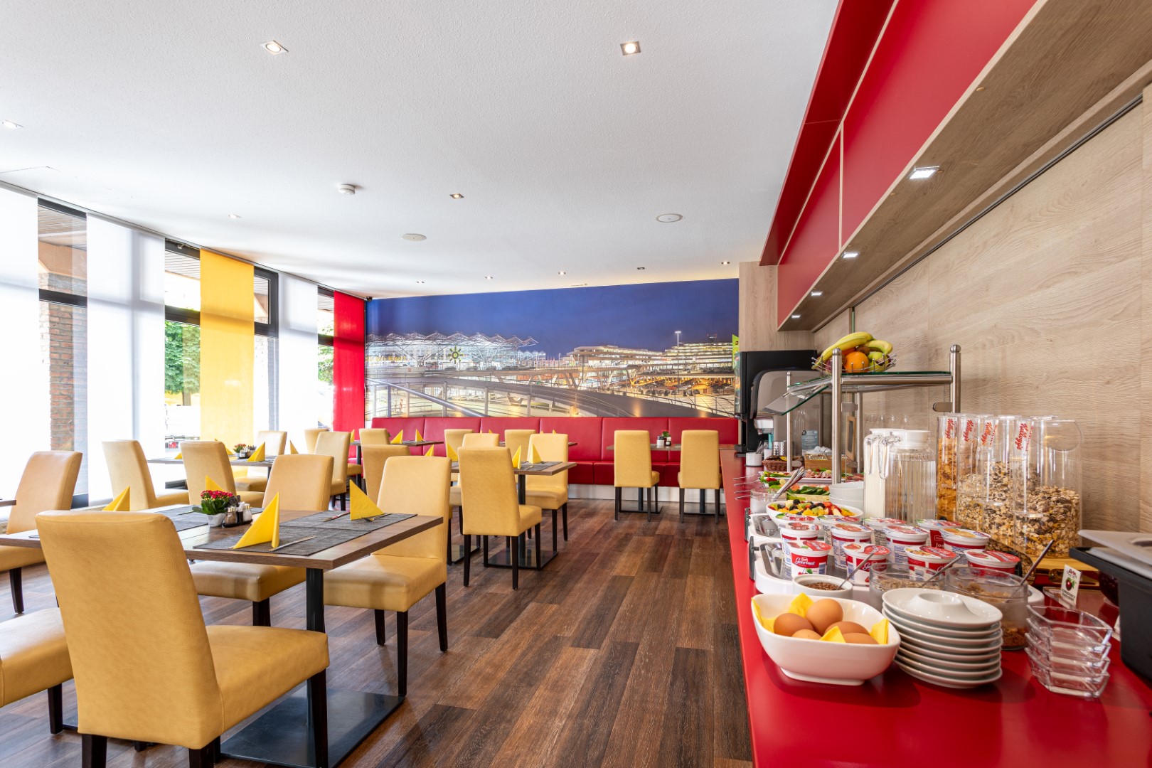 Genießen Sie unser erstklassiges Frühstücksbüffet in modernem und hellem Ambiente.