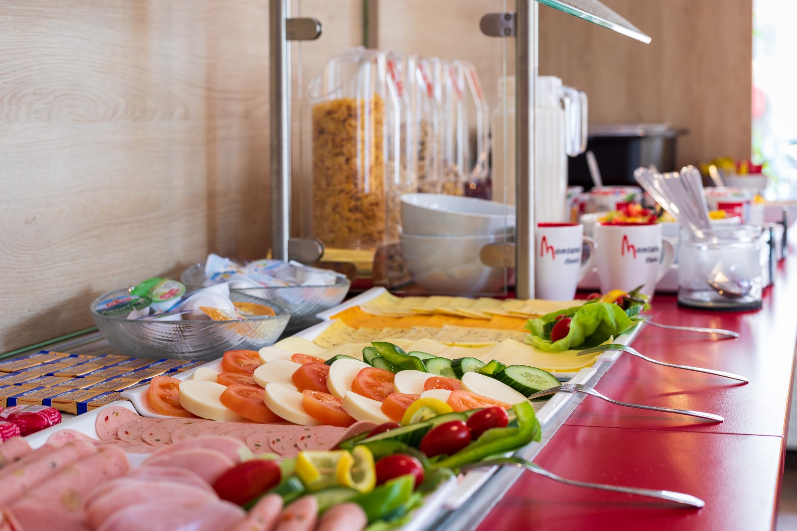 Frischer Wurst- und Käseaufschnitt, Rührei, Bacon sowie ein Müslibüfett mit Obst und Joghurt runden unter anderem unser Angebot ab.