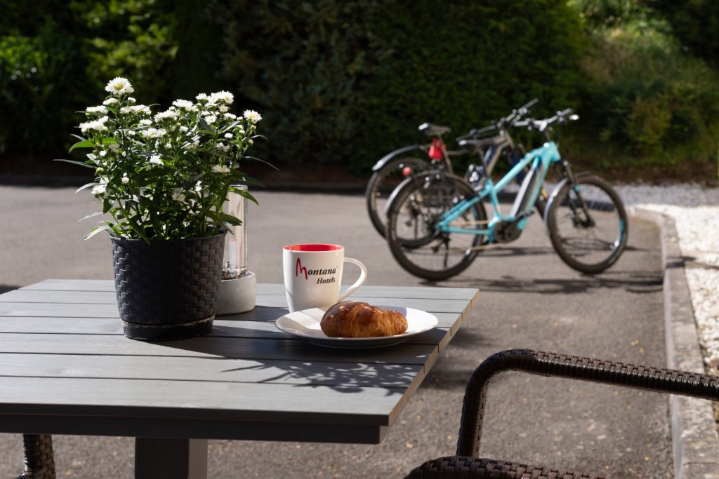 Mit unserem reichhaltigen Frühstücksbuffet beginnen Sie gestärkt Ihren Tag. Um den Start abzurunden, finden Sie neben der Rezeption unseren gratis Coffee to go Tisch.